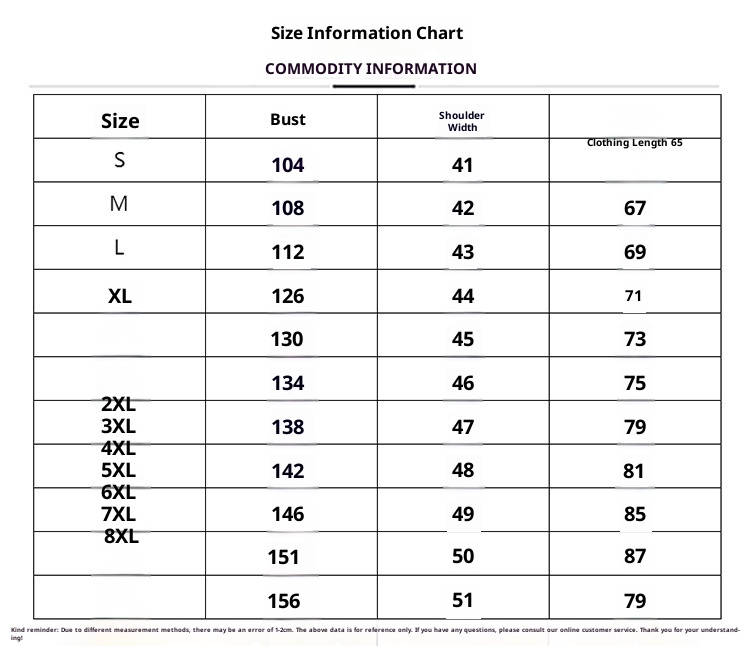 Size: S, M, L, XL, 2XL, 3XL, 4XL, 5XL, 6XL, 7XL, 8XL